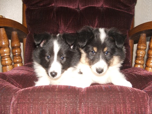 Two new girls arrived April 2nd. Sisters from Texas - Bi Black and Tri color. Both girls are heavily white factored and will be bred to our Blu when the time comes. We hope to produce some really nice CHWs